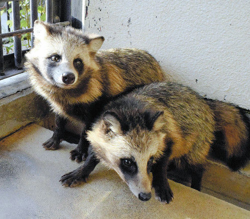 写真:元気に育っているタヌキの姉妹