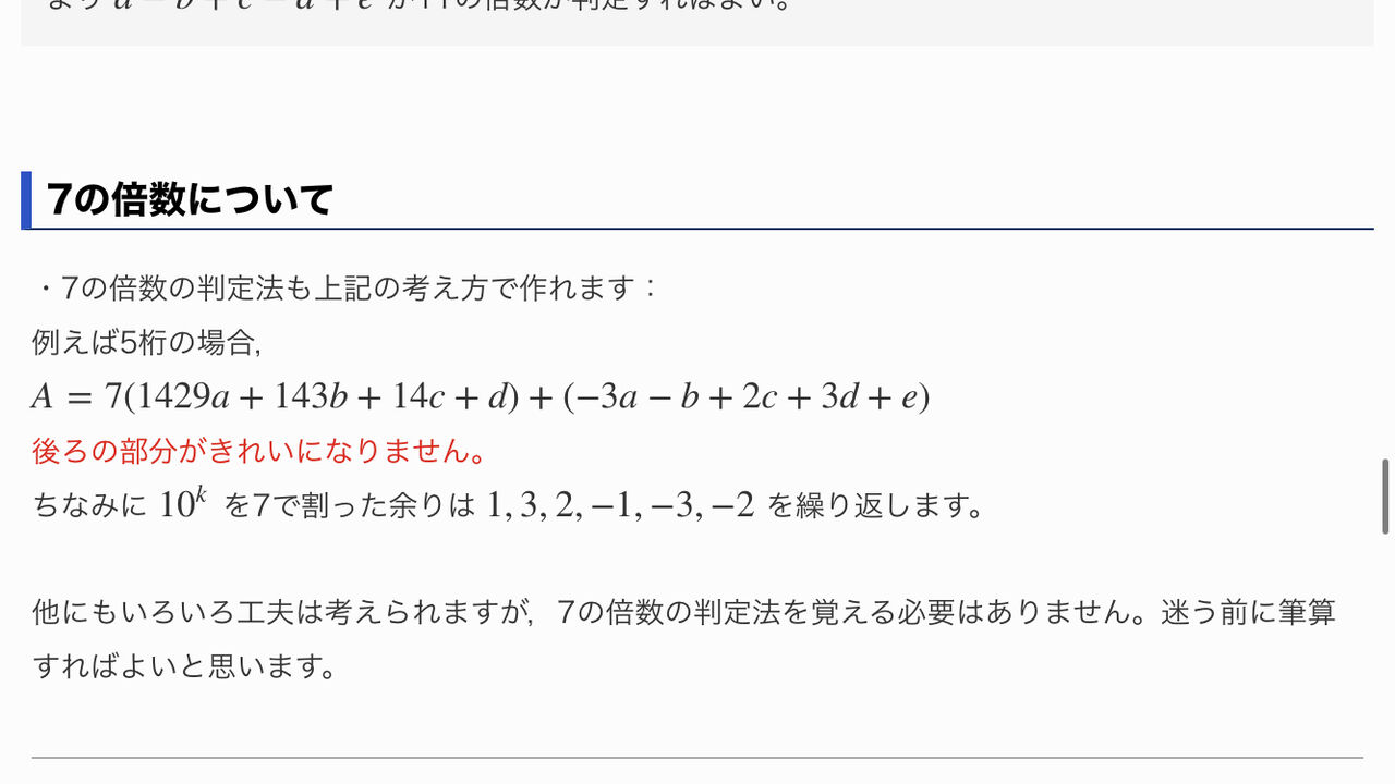 >>7の倍数 覚えなくて良い